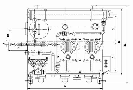 ≥250L/min稀油站,采用蒸汽加熱油箱中的潤滑油,儀表盤尚多一檢測冷卻器進出水管壓差的儀表,其主要部件均另外裝于基礎上;而≤125L/min稀油站的全部部件都裝在油箱上,為整體式結構。
